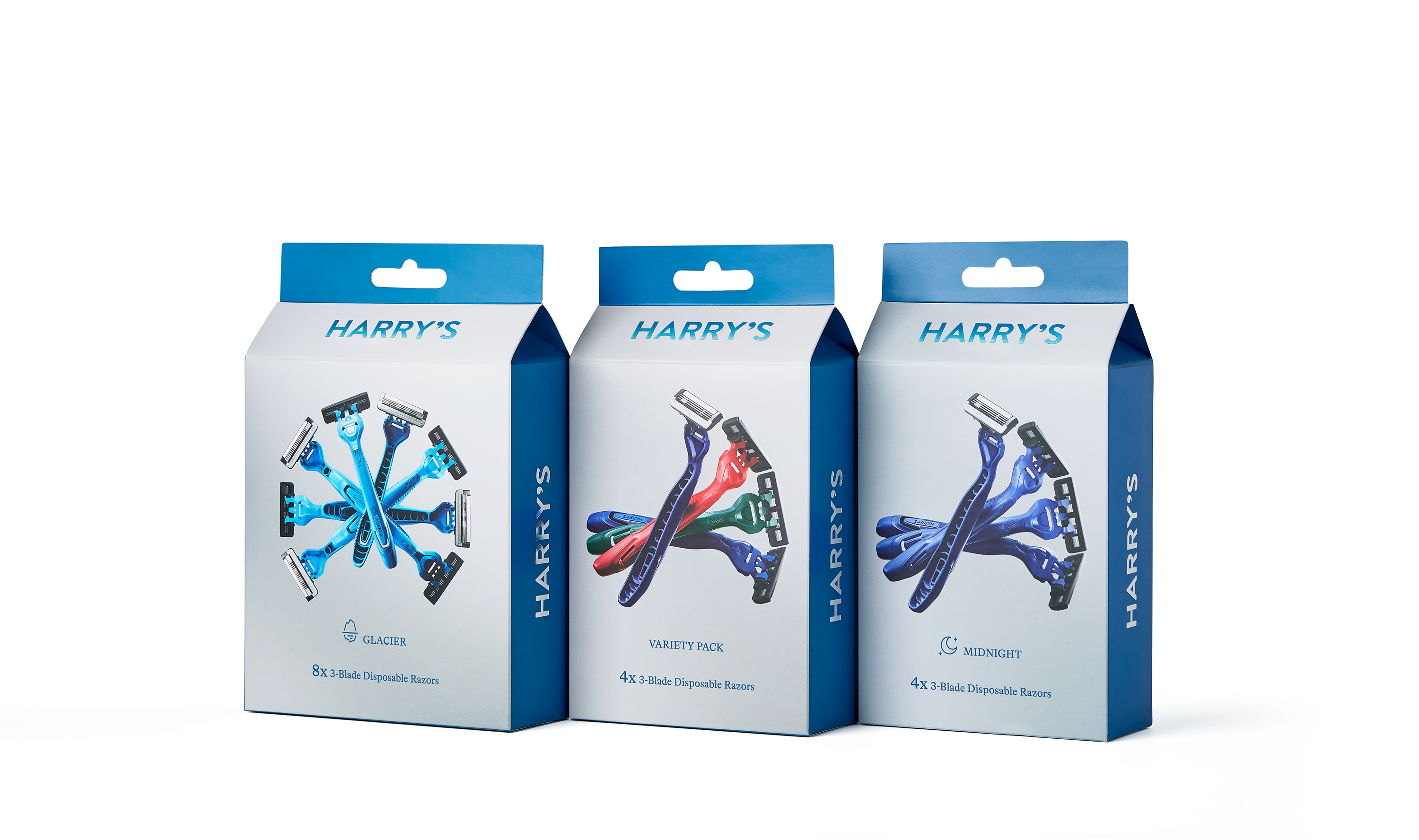 I led the charge once again as Harry’s refreshed and redesigned our razor and cartridge packaging graphics and introduced our new disposable razors. The refresh was thoughtfully brought to life with the goal of creating a future-forward experience that celebrated the details of our elevated, two-tone razor design. These new, fully recyclable packages stand out for their sleek modernism while still capturing Harry's elevated yet approachable design-minded spirit.